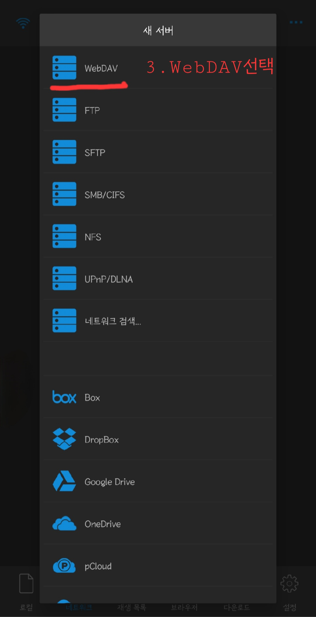 - 그 아래 박스에 목록 중에 WebDAV 선택